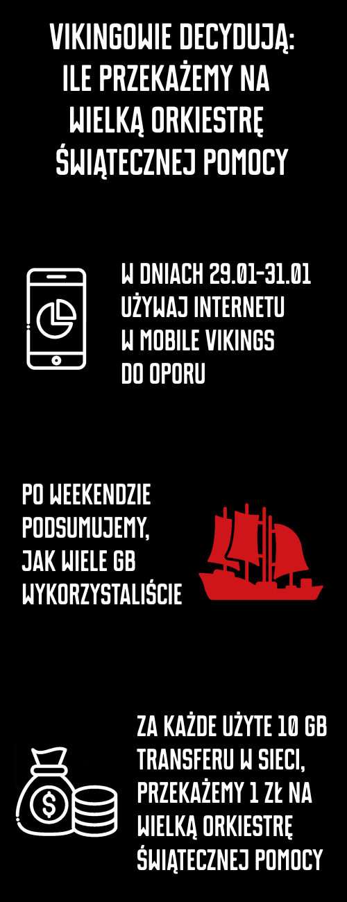 The weekend of mass internet usage is behind us. Vikings did not disappoint, and the usage they generated was as much as 53438.4 GB! This means that Mobile Vikings will donate PLN 5343.84 to the Great Orchestra's account. 💖