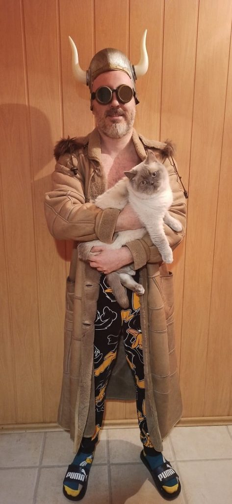 which is 3rd place, was taken by Viking Damian. Viking horns, a long cloak, and a companion in the form of a cat! We couldn't ignore this laid-back photo. 😸 Damian feels like a member of the community and loves being among cool Vikings.