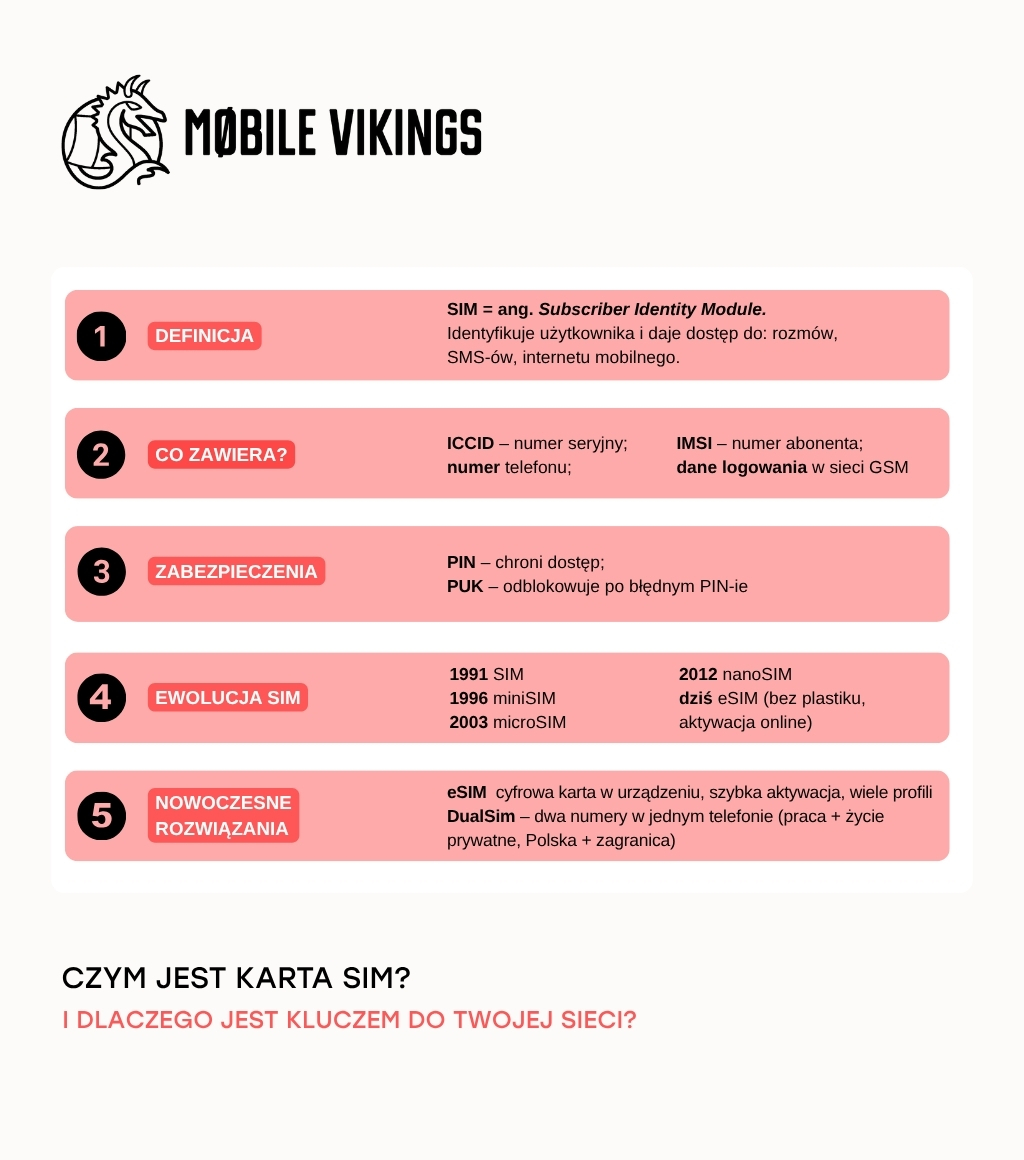 - Karta SIM to przepustka do sieci – odpowiada za identyfikację użytkownika i umożliwia rozmowy, SMS-y i internet mobilny.