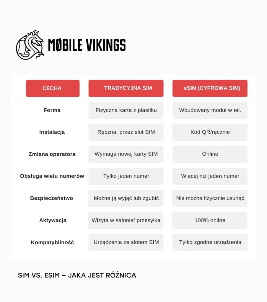 Obie wersje działają w podobny sposób – różni je jednak sposób aktywacji i możliwości, jakie Ci dają. W wielu nowych modelach telefonów można łączyć eSIM z fizyczną kartą SIM, korzystając z dwóch numerów jednocześnie.